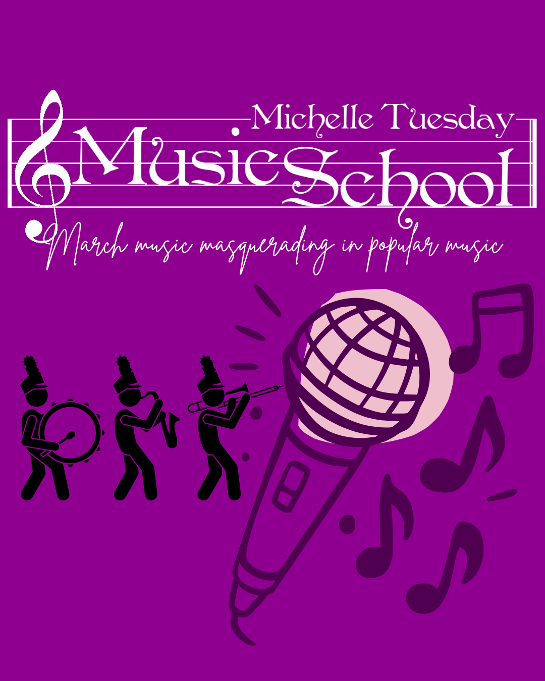 I take lessons with Michelle, and we’ve been discussing songwriting lately. She had me create a march. While I’m familiar with traditional marches, I marched with the band in junior high and high school.